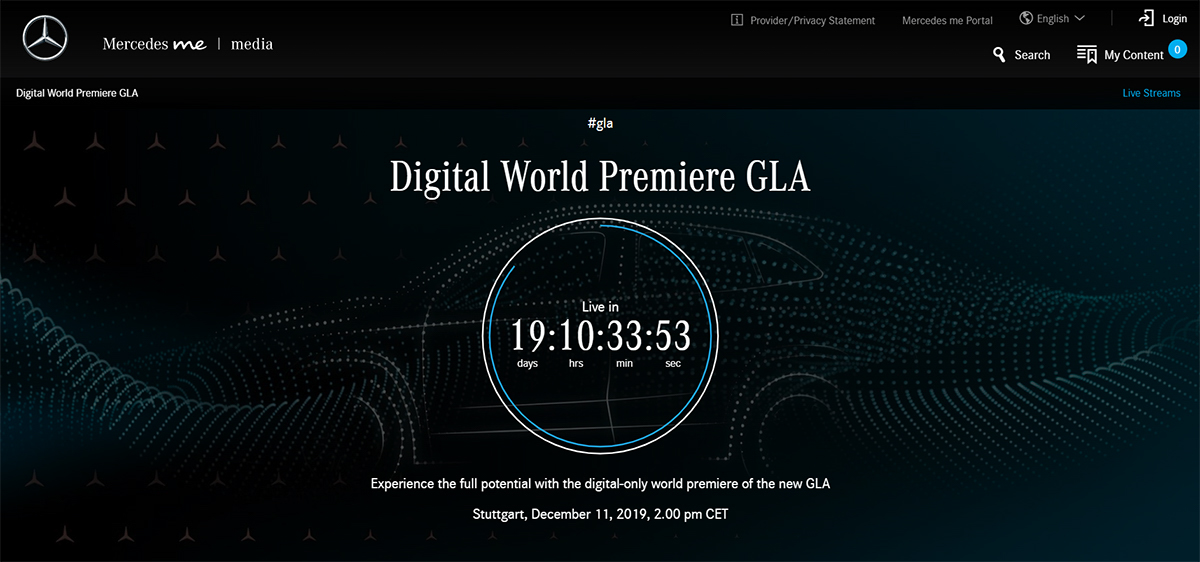 Mercedes-Benz 专门攻打年轻市场的 A-Class 车系在推出新世代的 NGCC 车型以后,目前仅剩休旅版的 Mercedes-Benz GLA 尚未发布,原厂早前就曾透露将会举办大型的网络直播发布会,而如今 Mercedes 官网就出现了倒数器,确认这款入门豪华 Crossover 将会在12月11日正式发表!