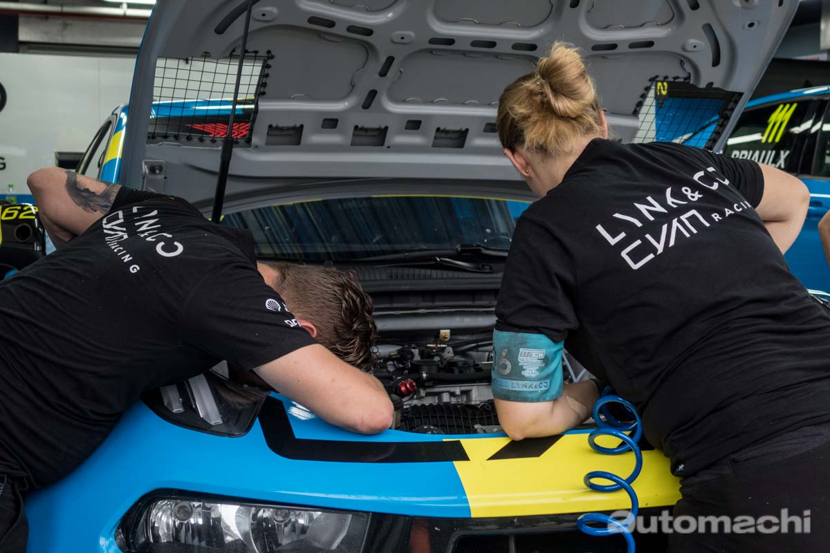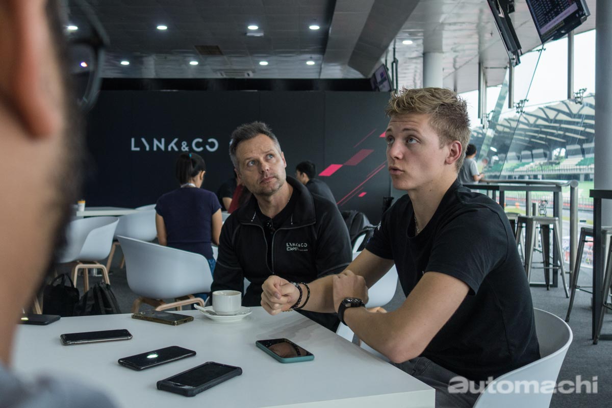 当然,除了采访以及参观他们的赛车手以外,小编也非常荣幸地目睹了 Lynk&Co 03+ 实车!其实出征 2019 FIA WTCR 的 Lynk&Co 赛车就是 Lynk&Co 03+ 的加强版车型,而普通版的 Lynk&Co 03+ 其实在中国市场也已经非常普遍,亮相于今年8月份,目前已在中国北京等地区上市,售价大约22.88万人民币(折合马币大约 RM 135,000)。Lynk&Co 03+ 基于 CMA 模组化平台打造,可兼容一切 Volvo 的动力配置,所以它采用了 Drive-E 2.0L涡轮增压引擎,最大马力达到了254 Hp,峰值扭力350 Nm!搭配 BordWarner 的智能四轮驱动系统以及 Aisin 8速自排变速箱,动力配置完完全全是来自 Volvo !而且根据官方的数据, Lynk&Co 03+ 的0-100加速表现为5.9秒,非常接近 Civic Type R FK8(5.7秒)!