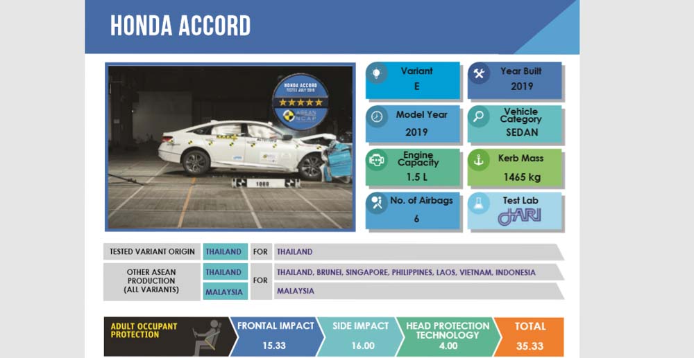 Honda Accord 顺利获得 Asean NCAP 五星好评!