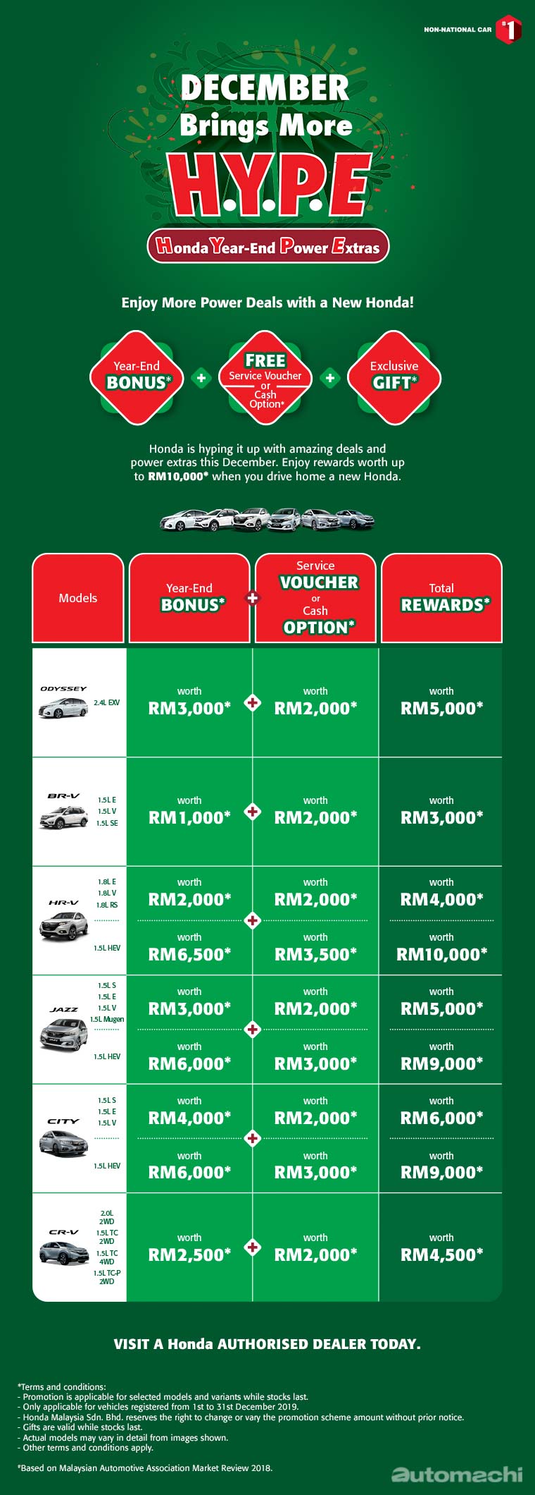 眼看就到2019年的尾声了,还有大约两个星期2020年就正式到来,而 Honda Malaysia 目前就推出了年终促销活动,此活动折扣高达 RM 10,000!而且 Honda 旗下的 Jazz,City,BR-V,HR-V 以及 Civic 等车款都受惠!