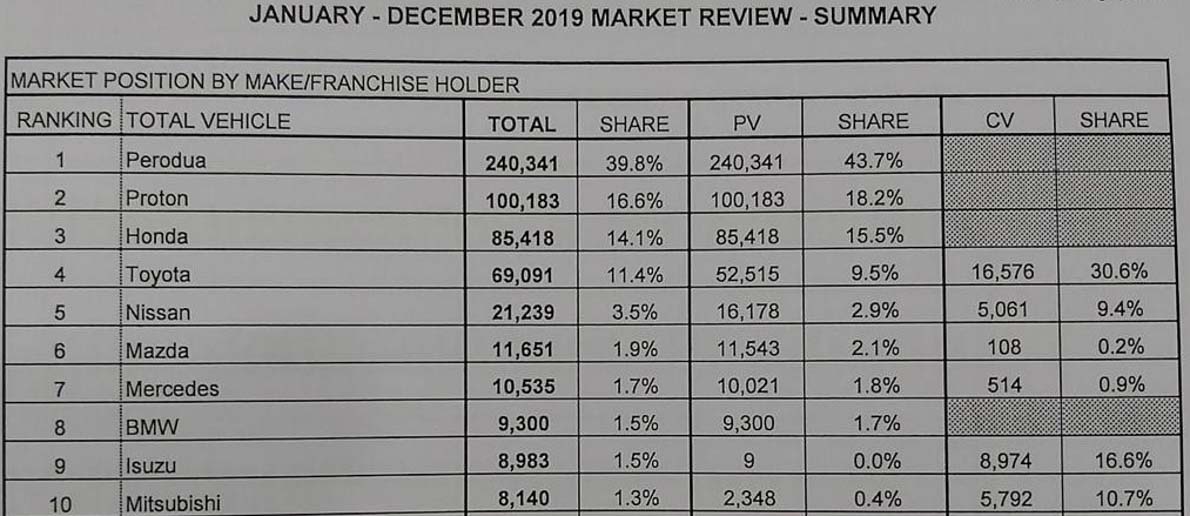大马汽车商公会 MAA 公布2019我国最畅销汽车品牌榜单,Perodua 再度夺冠!