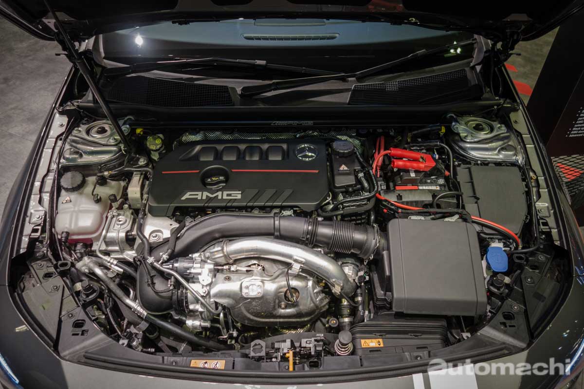 在动力配置部分,其实所有的 AMG CLA 都是搭载同一具2.0L 涡轮增压引擎,只不过在引擎以及 ECU 的调教有所不同罢了。说回这辆入门级 AMG 轿跑 CLA35,CLA35 拥有306 Hp的最大马力以及400 Nm的峰值扭力,并搭配4 Matic 全轮驱动系统以及 AMG Speedshift 7速双离合变速箱。这样的动力组合让 CLA35 0-100 加速只需4.7秒,最高时速更是高达250KM/H!另外,这辆 CLA35 还拥有 Race Start(弹射起步系统),可玩性非常高!