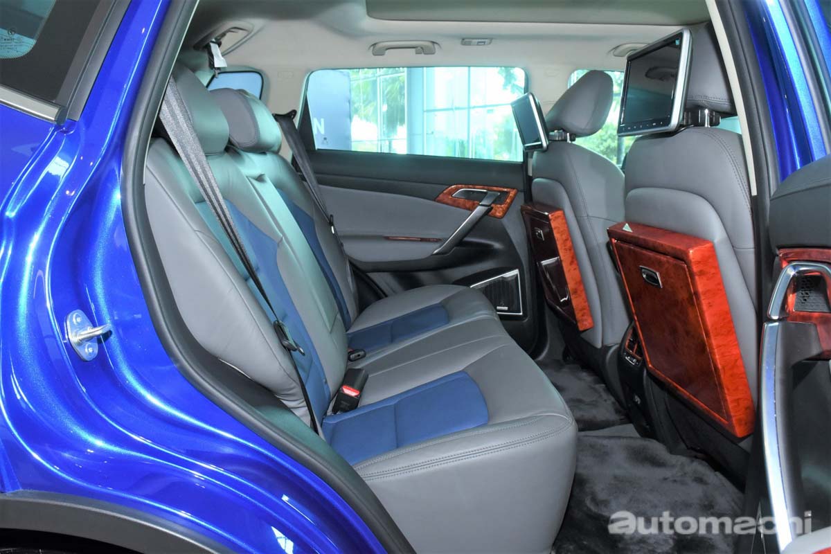 从照片中可以看到,这辆特别版 X70 在外形上采用了独特的宝蓝色烤漆,并且换上了独特的亮面银多幅式轮圈,而原厂也将一些外观饰板如雾灯座、车侧门板等进行了镀铬处理;而内装部分则可以看到原本的褐色 Nappa 皮革座椅已经换上了采用蓝色+灰色双色设计的皮革,搭配传统的木纹饰板,估计这应该是根据车主的喜好而特意换装打造。不止如此,Proton 也为这一辆 X70 的后座加装了可收纳的特别桌台,以及一对多媒体资讯娱乐显示器,而下方的绒毛地毯也令这台国产休旅车的奢华程度再提升。