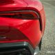 在车侧部分,Supra 很明显拥有与 BMW Z4 一样的长车头短车尾设计,这样的设陈比例对小编而言可谓非常性感;修长的车头侧面其实也隐约带有一点上一代 Supra A80 的感觉,还有在轮拱上方的散热孔设计在视觉上也是很加分,尽管它是没有用处的封死式设计。哦对了,车门的进气口设计也一样是假的喔,for illustration purpose only。如果你觉得照片中的 Supra A90 车长感觉很紧凑,其实是真的,这台车的轴距只有2,470 mm,和 Proton Saga 只相差了5 mm!这个轴距也比 Toyota 86 还要短了100 mm那么多,而且重心也是比 86 还要更低的,这样的设计其实是经过精心考量,以确保这台“牛魔王”拥有平衡的配重。