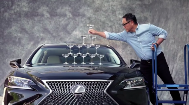 Akio Toyoda 和 Lexus LS500 重现香槟杯塔经典片段