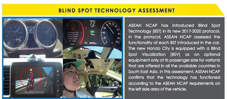 再来,在 Asean NCAP 报告中的 2020 City 也拥有车侧盲点侦测系统,也就是 Honda Lane Watch 功能,而在我们查询之后发现在测试中居然拥有这个功能,而相信未来在我国版的 Honda City 大改款也会有以上的配备,毕竟在之前 Honda Civic FC 发布的时候我国版的 Civic FC 在某一些配备上已经比泰国版的要好了(例如我国版本的 Civic FC 全车系标配数位化仪表,而泰国版并没有)。