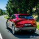 在外形上,CX-30 导入了最新“魂动” Kodo 设计理念,低矮的车顶线条以及简约犀利的车身线条极具运动气息;除了酷似 Mazda3 采用大面积盾形水箱护罩搭配犀利LED头灯组的前脸造型,这一回 CX-30 的车侧在光线下还可以在车门处看到S字形的折线,原厂宣称这特别的设计启发自日本书法。至于车尾则可以看到类似 CX-5 的扁平式尾灯组设计,而双边单出的排气管也让新车充满运动气息