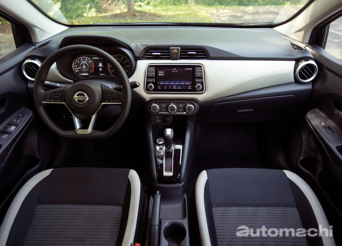 内装方面 Almera 基本上延续了 Micra 的设计风格,采用了全新的方向盘,并且拥有半数位化仪表,算是走在了潮流的前端。同样的 Almera 的全新内装谁显得非常年轻,并且在泰国拥有这双色搭配的内装,不过一般上相信这个版本来到了我国市场之后会采用单色内装,因为普遍上本地消费者并不会喜欢白色的内装设计。