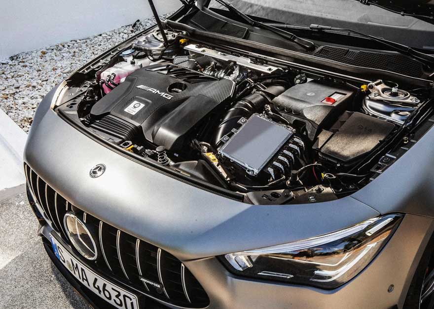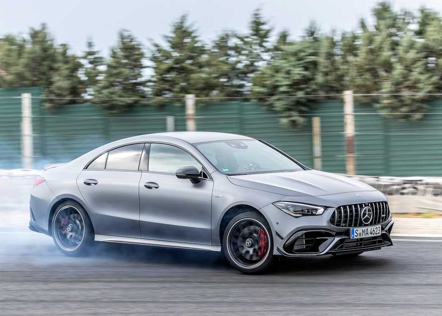 至于动力配置部分,新一代的 AMG CLA45 刚才小编有说了有两种车型,一个是 CLA45,另一个是 CLA45 S,它们之间的差异就在动力输出,虽然都搭载了代号为 M139 的全新2.0L涡轮增压引擎,但我国平行二手车商引进的 CLA45 S 属于最高阶的车型,马力到达了416Hp,扭力则为500Nm,搭配 4MATIC 全轮驱动系统以及8速双离合变速箱,0-100加速只需4秒,最高时速被电子限速在250KM/H!这样的性能别说钢炮,就连像是 Supra A90 以及 Lamborghini Gallardo 这样的性能跑车与老款超跑都不是它的对手呢!