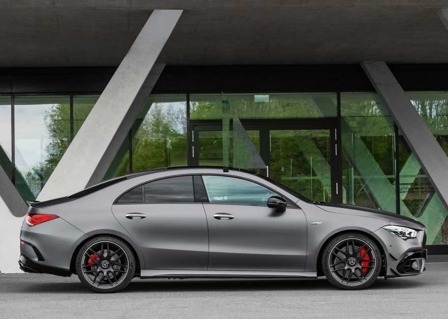 新一代的 Mercedes-AMG CLA45 一共有两种车款,分别为 AMG CLA45 以及 AMG CLA45 S,那我国平行二手车商这次引进的是最高阶的车型,也就是 AMG CLA45 S!新一代的 AMG CLA45 S 在外观的设计上基本延续了 CLA 普通版本的设计风格,不过在车身的颜色,空力套件,轮圈以及刹车卡钳等处都进行了升级,首先 CLA45 S 拥有非常独特的哑光灰车身颜色,看起来识别度很高,而在前方的直瀑式水箱护罩也可以看到有着非常大的空隙,这个设计是为了空气力学以及引擎的散热着想,毕竟这具引擎的热度应该不是开玩笑的,至于在车尾则是可以看到战斗感十足的双边双出排气管设计以及锐利的 LED 尾灯组,战斗感强烈。