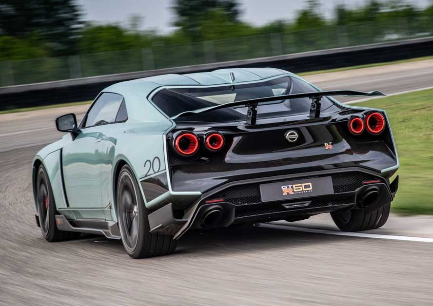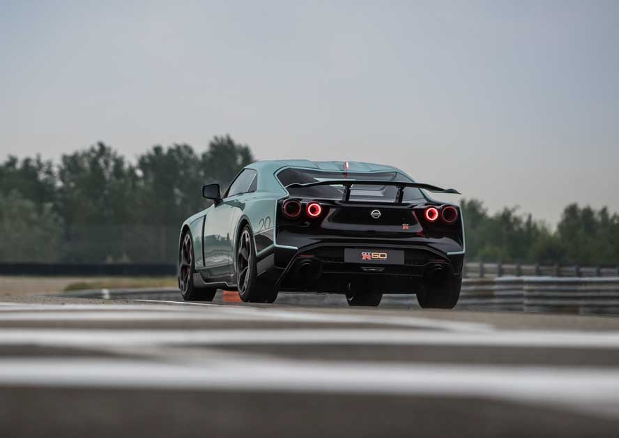 此外,Nissan 旗下的御用改装部门 Nismo 也针对这辆纪念版战神的动力组合进行升级,包括了换装高流量的 GT3 赛事式样大涡轮、加大中冷器、强化活塞、高流量燃油喷射系统、强化曲轴等等,在进行大量的内部强化后,GT-R50 所搭载的 3.8L V6 双涡轮增压引擎可产生高达710 hp的最大马力,以及高达780 Nm的峰值扭力,搭配强化后的6速双离合变速箱并采用 ATTESA E-TS 全时四驱系统的设置,预计 0-100 加速3秒左右就可达成。
