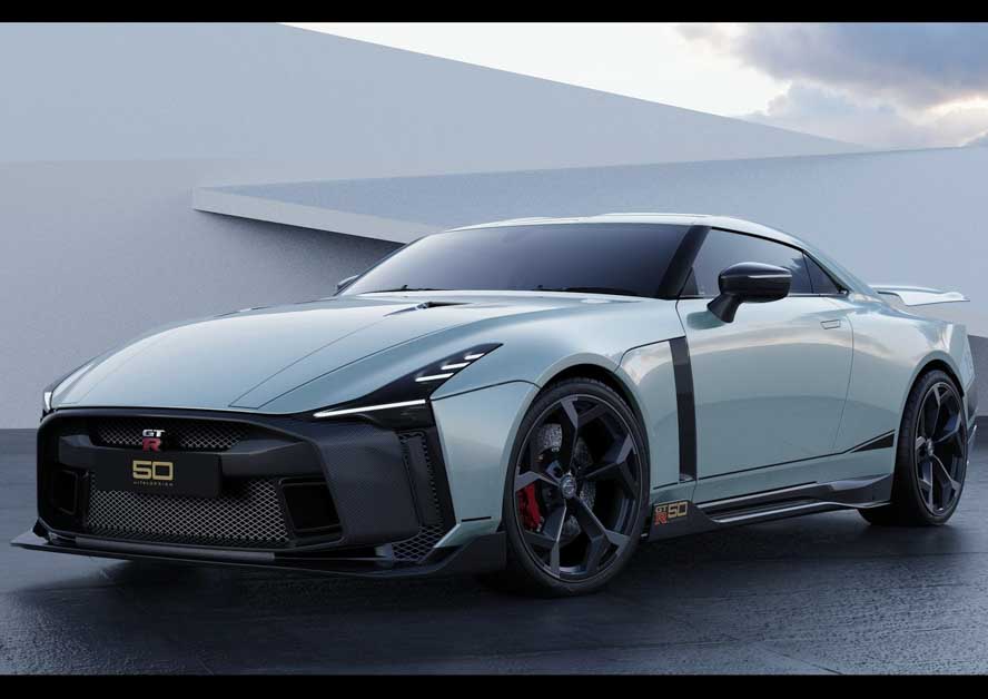 从官图中我们可以看到,首辆出炉的量产版 GT-R50 在车主的要求下采用了蓝绿色(Teal)的车身涂装,这款基于现行款 GT-R Nismo 打造而成的限量版跑车由意大利知名汽车设计室 Italdesign 操刀打造,在外形上有着与 GT-R R35 截然不同的造型设计,像是超锐利的 LED 头灯组,搭配亮黑色的超大型水箱护罩。