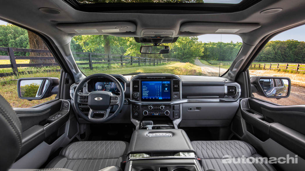 内装方面,首先映入眼帘的就是 2021 F-150 的12寸超大尺寸荧幕,这个荧幕支援 Apple CarPlay 、 Android Auto 和 SYNC AppLink 手机互联以及 Waze 和 Ford + Alexa 等等,功能相当强大,另外 2021 F-150 也采用12.3寸的了数位化仪表,可以显示的内容相当丰富,除此之外我们可以看到 2021 F-150 的内装质感相当出色,在中控台,中央扶手,排档杆还有门板等处采用了大量的皮革(毕竟 2021 F-150 售价不便宜),相信开着 2021 F-150 舒适度应该是相当出色的。