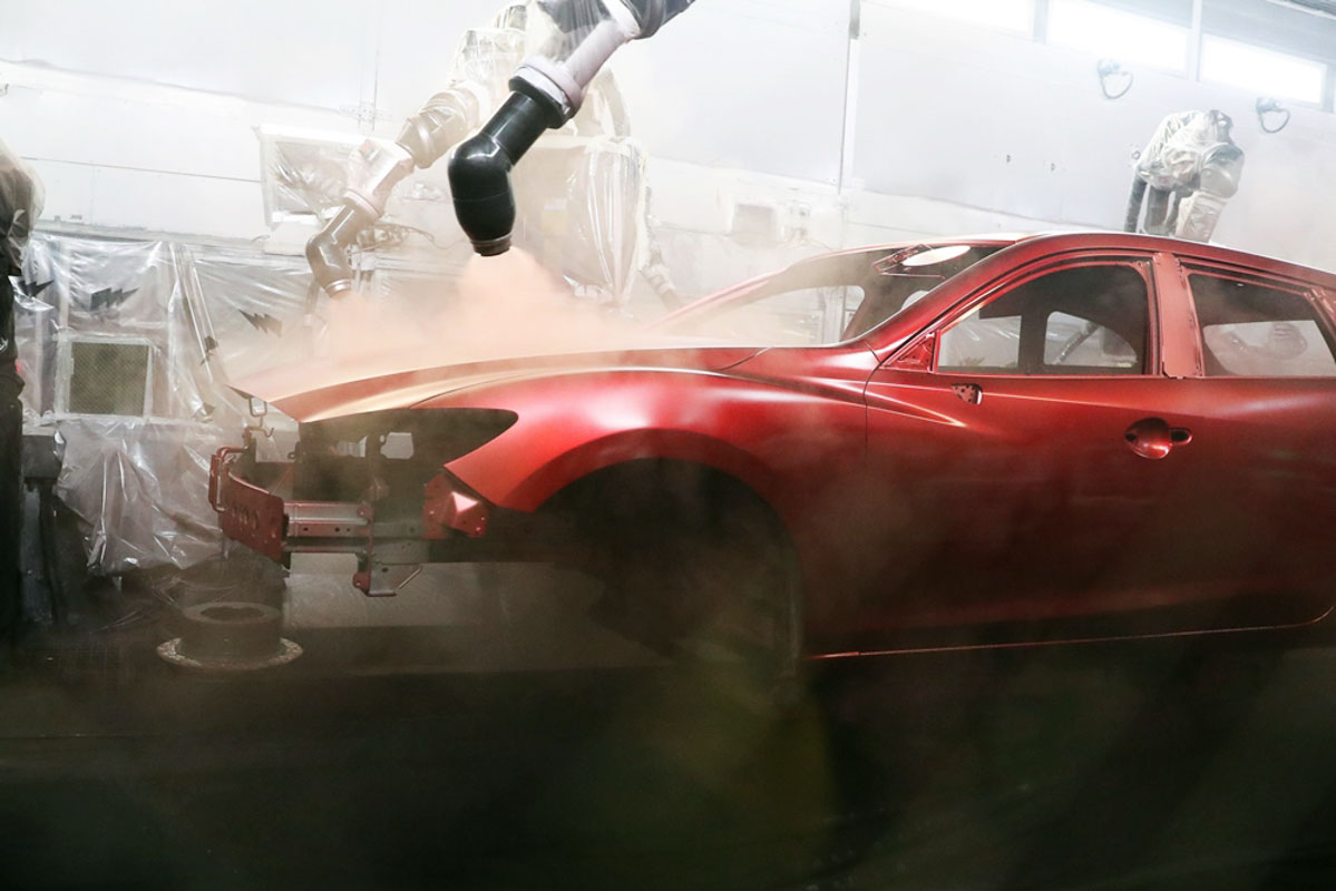 于是,水晶魂动红(Soul Red Crystal)诞生了。它的创作灵感源自喷发的岩浆以及岩浆最后冷却形成的黑色的岩浆岩。耗时五年研发,为了让全新的水晶魂动红达到一种流光溢彩魔幻般的色彩变化,工程团队巧妙地利用了三层涂装层,通过改变重叠秩序实现了水晶魂动红丰富多彩的表情变化。而为了达到理想效果,Mazda 还研发了高饱和度的红色涂料,以及底层的反射、吸光层,将水晶魂动红的涂料颗粒打磨的比一般涂料更小,喷涂后能实现更高的透明度。