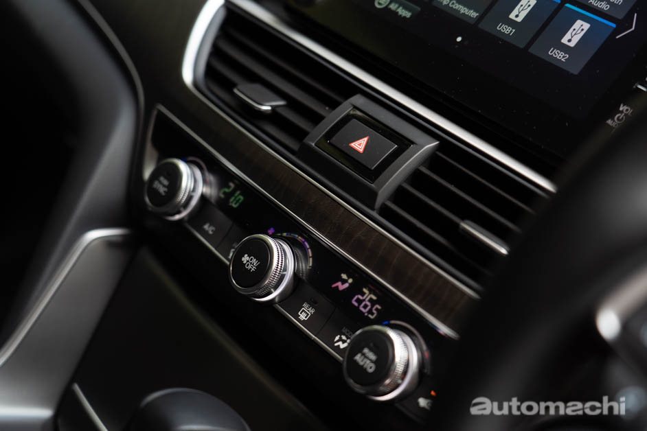 动力配置部分,2020 Accord 的路税是 D-Segment 里最便宜的(RM90),搭载的引擎是1.5L VTEC Turbo 涡轮增压引擎,并搭配 CVT 变速箱,虽然路税最便宜,引擎排气量最小,但马力却是最大的(201PS),扭力260Nm!0-100KM/H 加速9.1秒(TC-P),综合油耗为6.3L/100KM。
