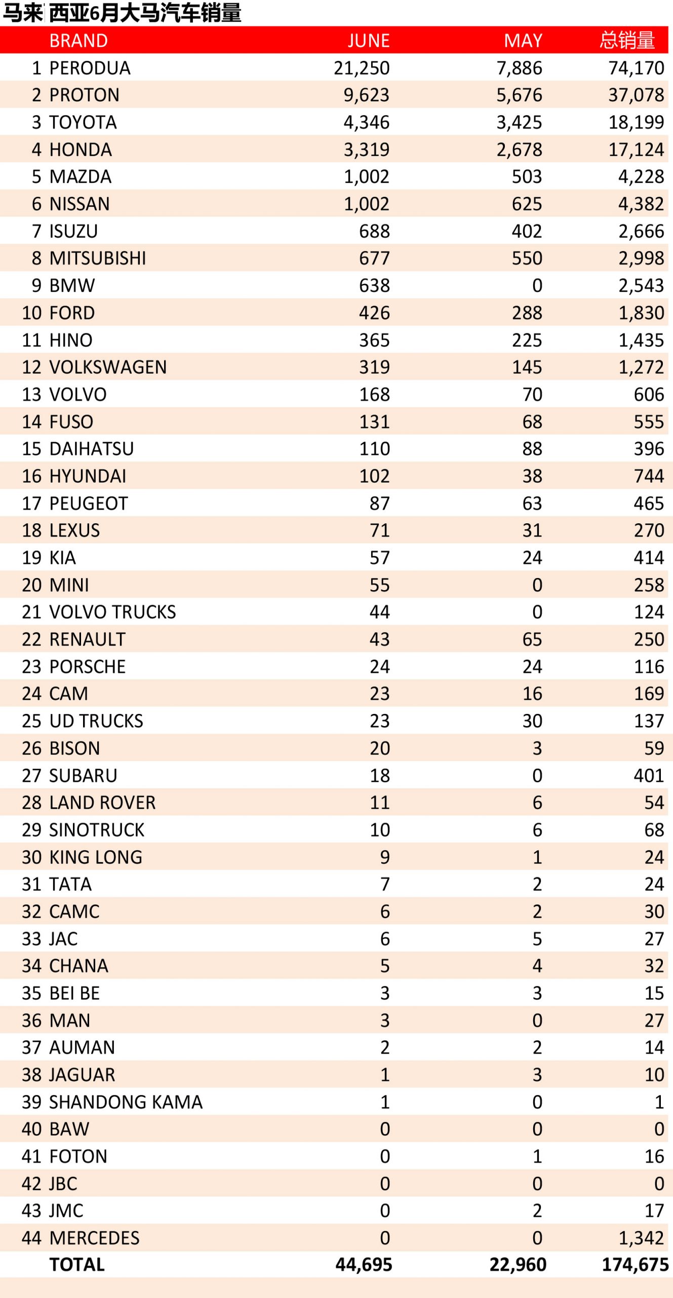 根据 MMA 的销量排行来看,在6月份,Proton 是以3,947辆的增长成绩奋力巩固了亚军位置,6月份总销量为9,623辆。至于冠军宝座当然还是我国国民代表 Perodua 蝉联,总销量为21,250辆,比起5月份,增长了13,364辆。