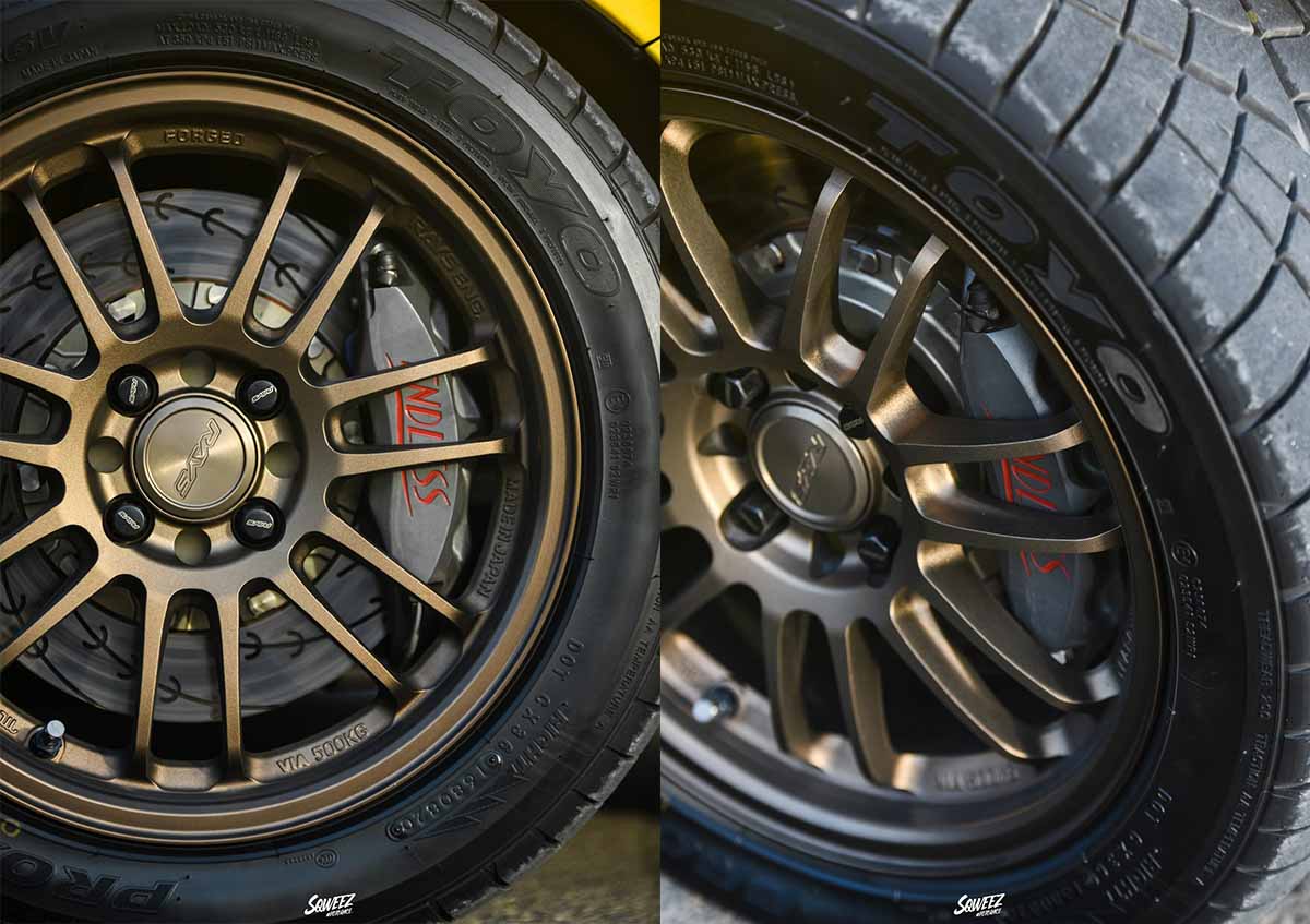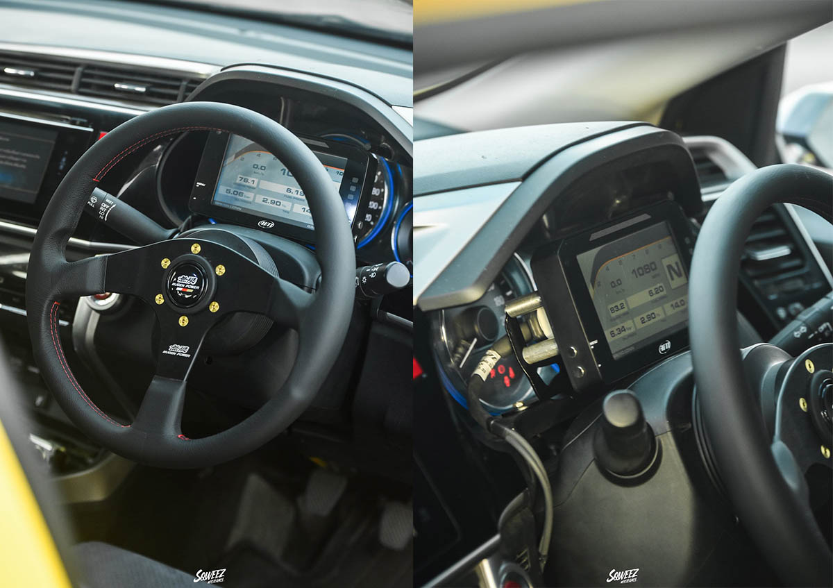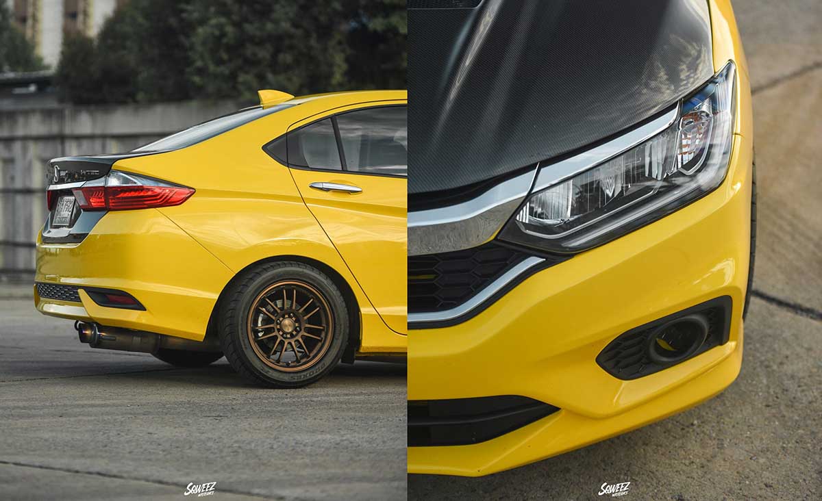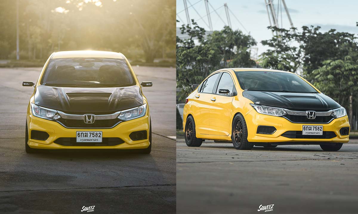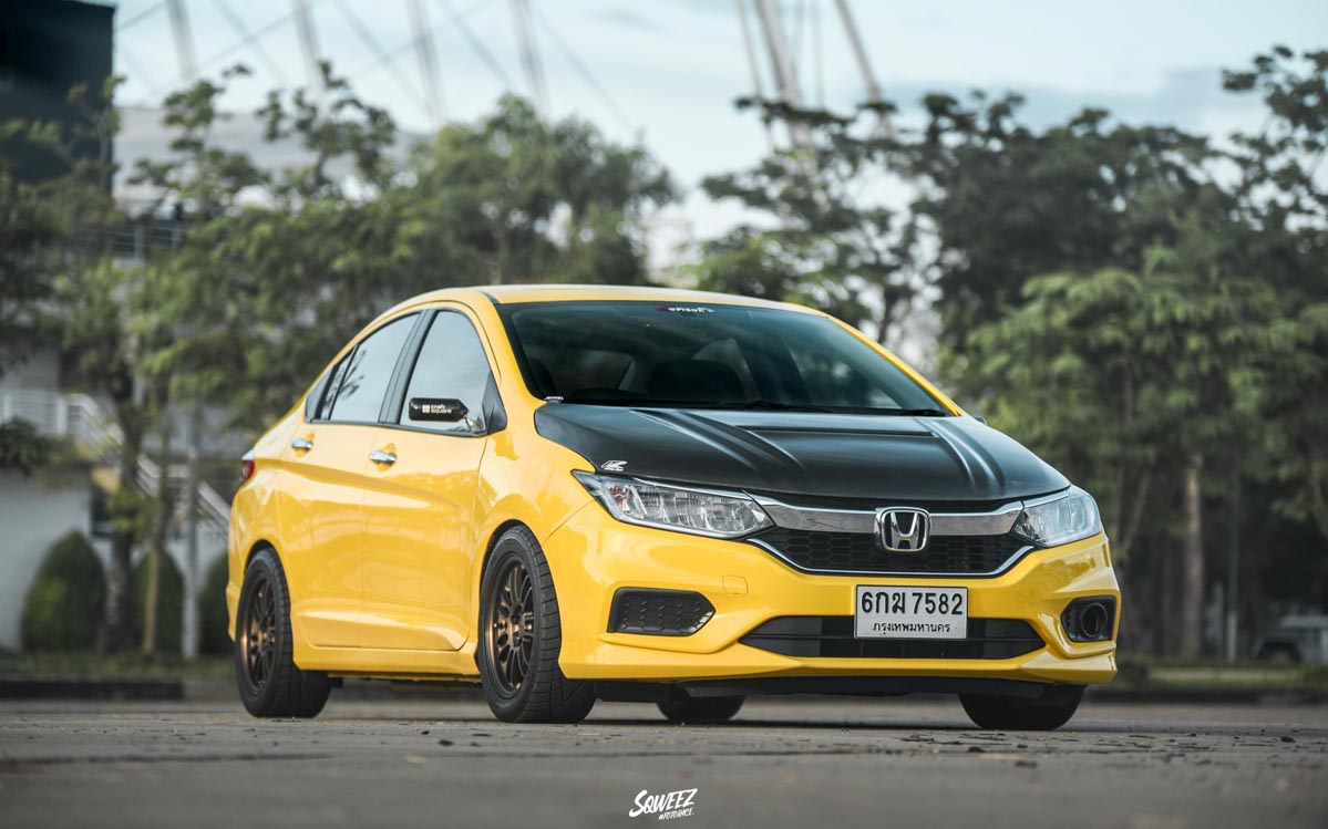 今天小编带来的这辆爆改 City 又是来自改车很厉害的泰国,在外观上这一辆 GM6 可以说是非常地干净—没有任何浮夸的空力套件与LED灯条,有的只是碳纤维引擎盖与尾箱盖,搭配鲜黄色的车身,Honda 改装必备的 Craft Square 后视镜,搭配15寸的 Volk Racing RE30 以及降低的车身,看起来就和一般典型的泰式改装车一样,不说的话,你绝对不知道这是一辆猛兽级的 Honda City !