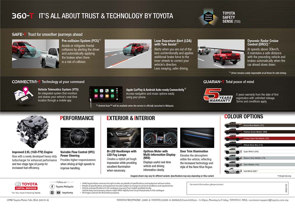 (Toyota 也推出了 Early Bird 早鸟优惠,凡是在今年入手顶级车型,也就是 HILUX DOUBLE CAB 2.8 ROGUE (AT) 4X4,都可以以 RM144,880 的售价购买,节省了 RM2,000!)