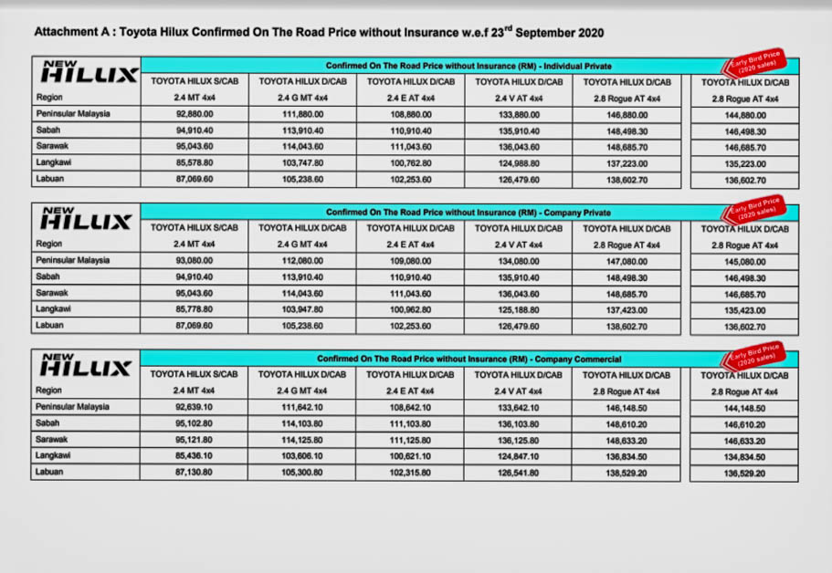 2020 Toyota Hilux 大马售价由 RM92,880 起跳!