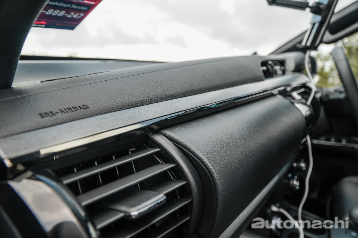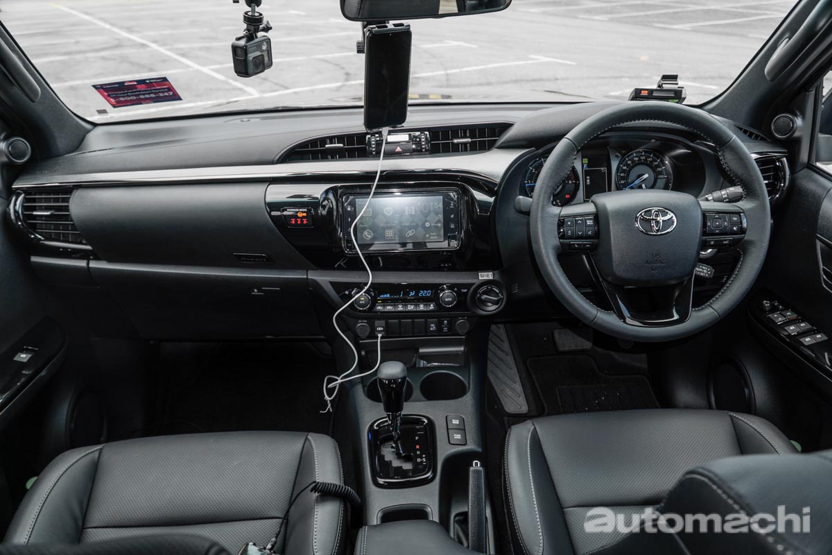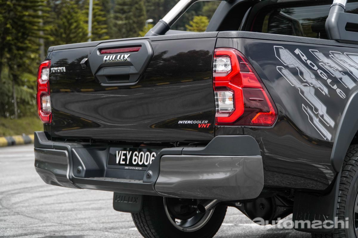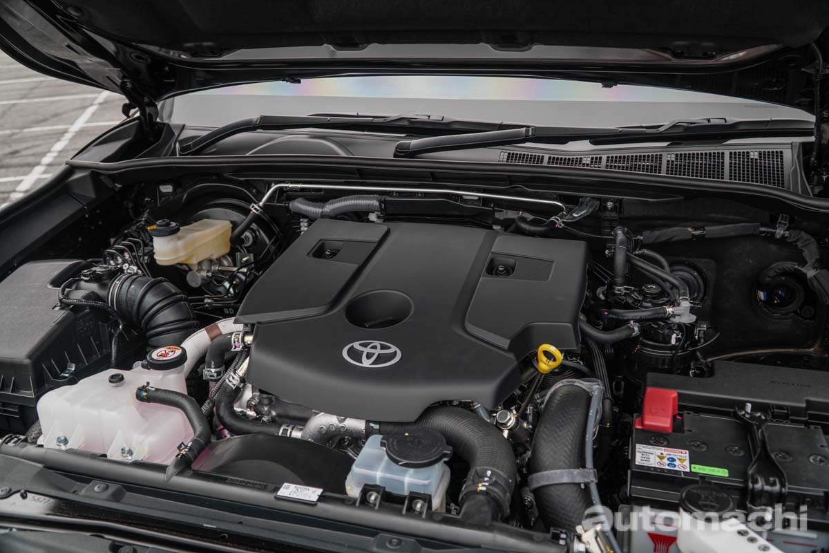 Hilux Rogue 的整体表现不仅仅是在外观上,整体的行驶其实也是有极大的不同,例如重新调校的2.8L柴油涡轮增压引擎,最大马力和峰值扭力分别提升到204 PS以及500 Nm,在一般驾驶下其实已经可以感受到引擎的动力响应比起之前的车型更快一点了,非常的流畅,在普通模式下是最为适合一般驾驶的模式,不过如果你要比较热血的动力响应那么你还是需要切换到Power Mode 才行!这个模式下可以感受到引擎的动力响应变得更为积极,同时引擎的声浪也会比较大一些,这个时候你可以感受到204 PS的柴油引擎动力表现真的不是开玩笑的,在试驾的时候原厂安排我们走了一段 Batang Kali 山路前往云顶,新的柴油引擎可以让 Hilux Rogue 毫无压力的应对这个山路表现,而在我印象中,能有如此表现的柴油引擎应该只有 Ranger 的2.0L双涡轮柴油引擎了!(虽然 Hilux Rogue 的引擎排气量大了不少)。