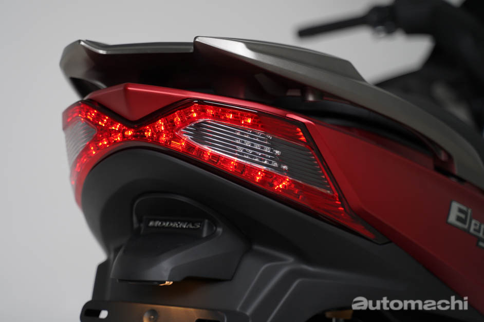 再来就是外形设计,作为一辆 Sccoter,Elegan 250 ABS 的外形霸气十足,备有锐利大型的 LED 头尾灯组,更高大的挡风镜,以及设计非常 Sporty 的空力套件套件,整体看起来都非常动感酷炫,有点不像 250cc 的摩托车呢!