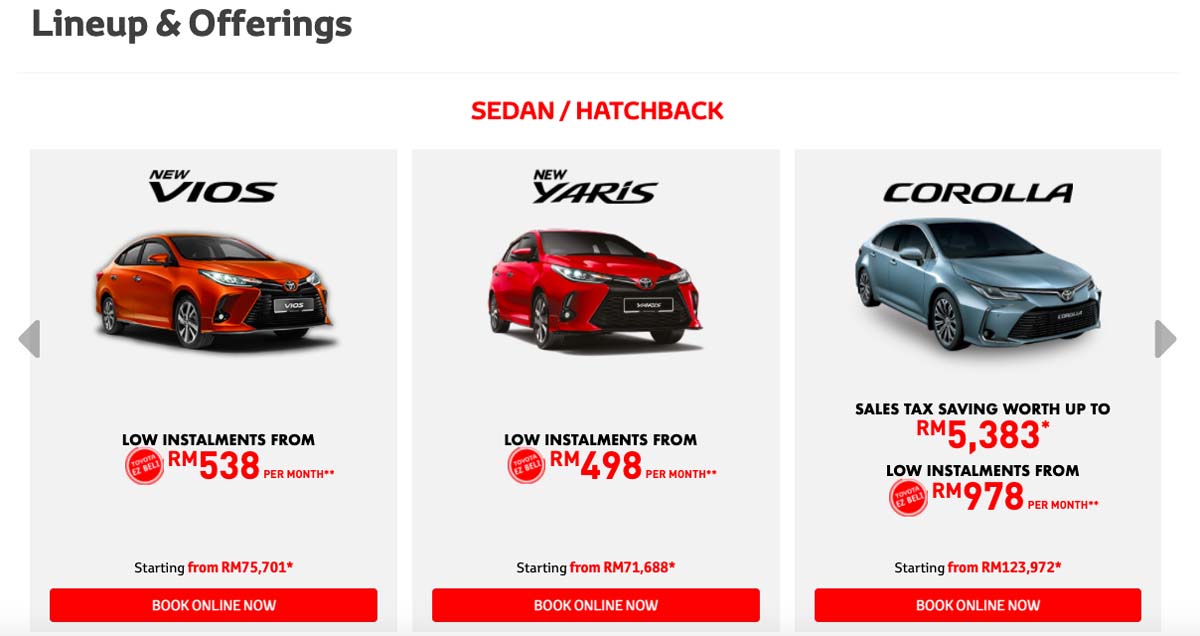 Toyota Online Showroom 不仅给你不一样的购车体验,同时也可以在新常态下更好的保护你的安全,让你减少因为出门而遇到危险的几率!所以还等什么呢?如果想看看你心仪的车款,马上登陆 Toyota Online Showroom 吧!