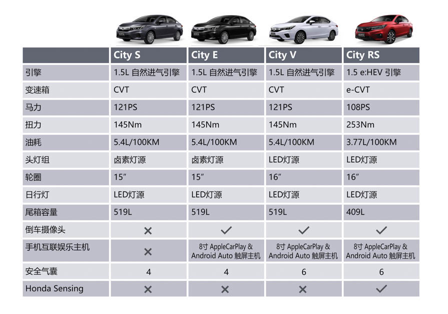 我们先说外观的配备与设计,V 版本的车型具备了设计更加精致的 LED 头灯组,比起 S 以及 E 车型的卤素灯泡,V 版本的 City 自然看起来更加酷炫时髦!不但如此,City V 车型也搭载了16寸的运动轮圈,视觉上更加饱满动感!