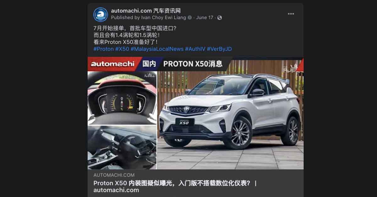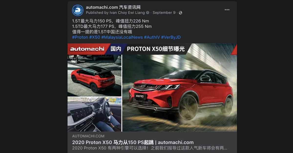 2020年6月17日:Proton X50 将会有1.4L和1.5L涡轮引擎