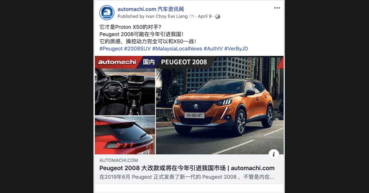 2020年4月8日: Peugeot 2008 将会在今年引进我国