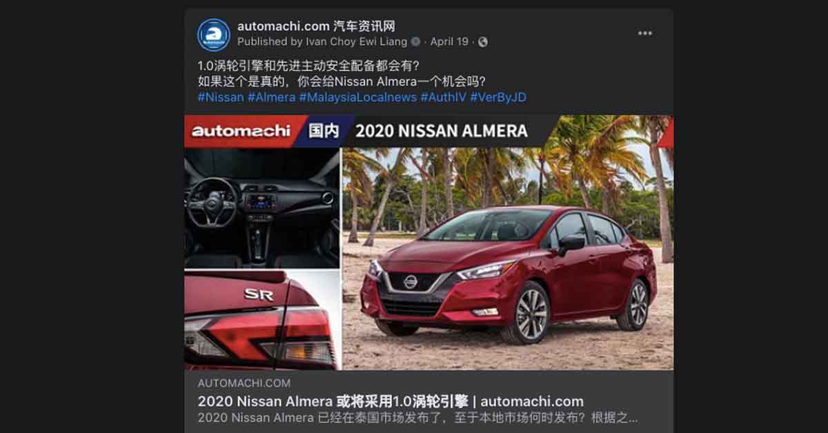 Nissan Almera 早在2019年就有消息会引进我国,但是因为在北美有1.6L自然进气引擎,至于泰国则是采用1.0L涡轮增压引擎,所以当时不知道我们会得到什么引擎。在4月19日我们获得了 Almera 在本地测试的谍照,而且我们和泰国靠近,加上Nissan 在为维修员进行培训的时候也确认了这款车会采用涡轮引擎,所以我们报导了了我国的 Almera 也会使用这具引擎。