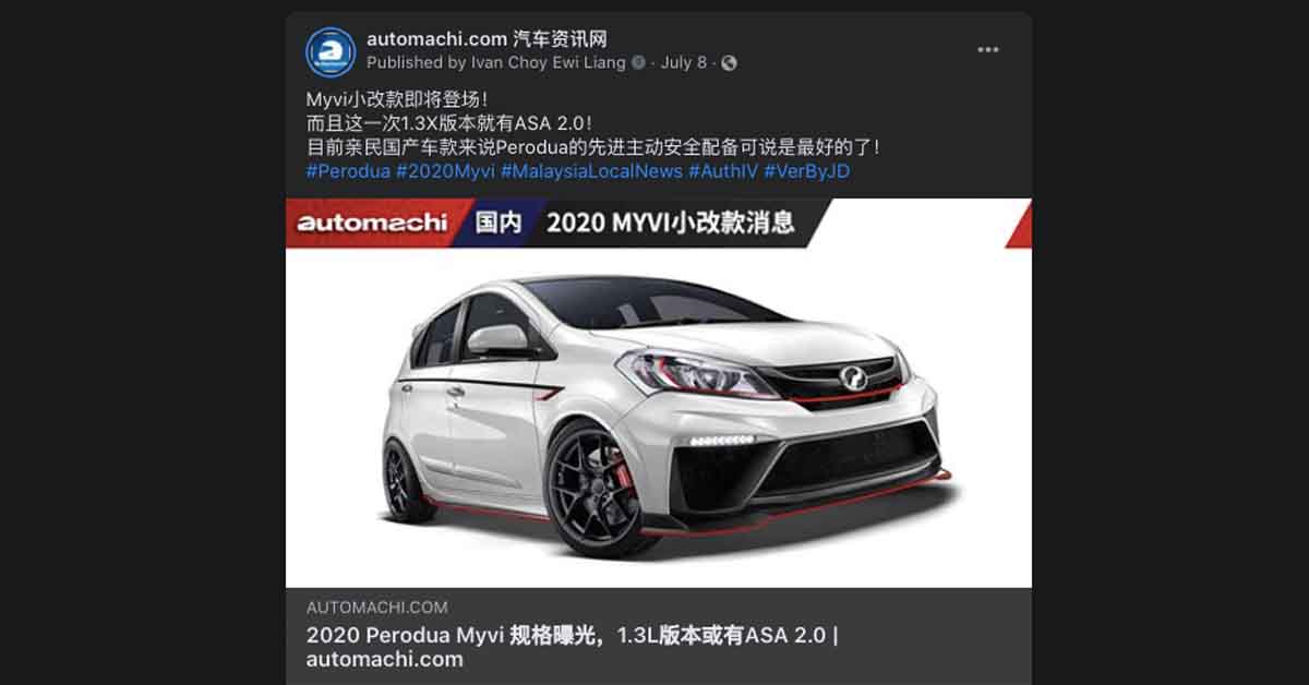 2020年7月8日: Perodua Myvi 小改款将有运动造型+先进主动安全配备