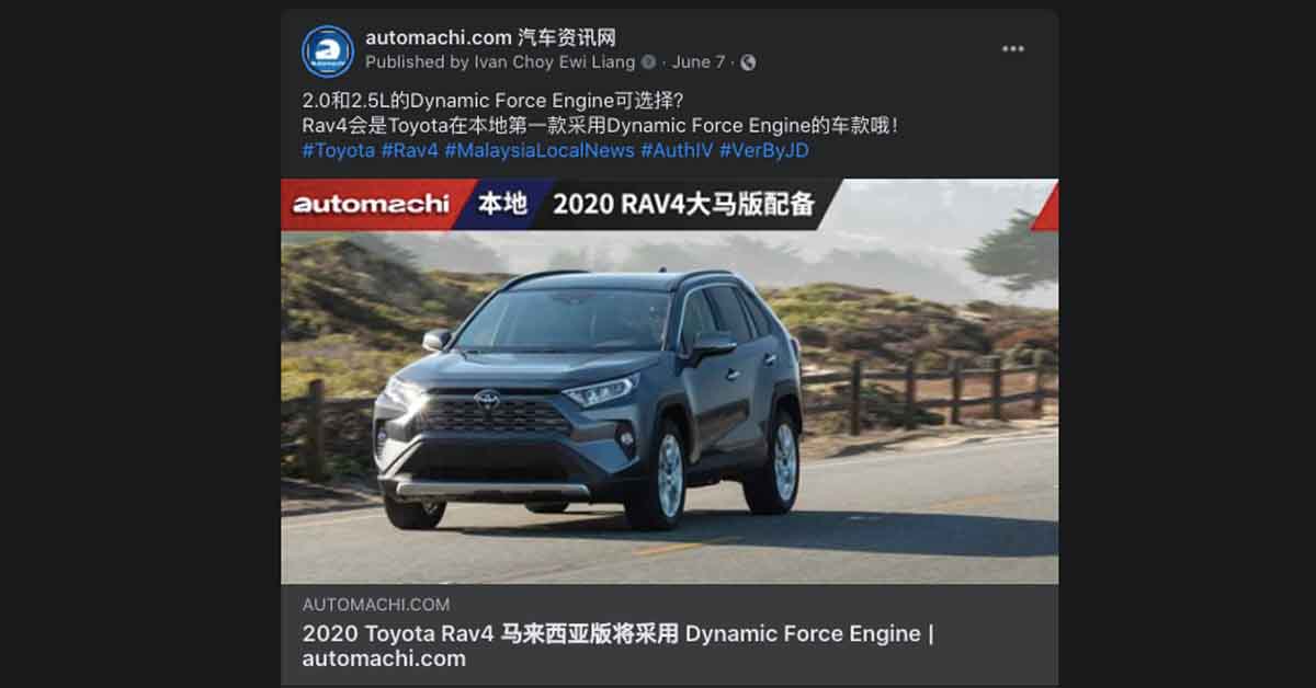 2020年6月7日:我国的 Toyota Rav4 会采用 Dynamic Force Engine