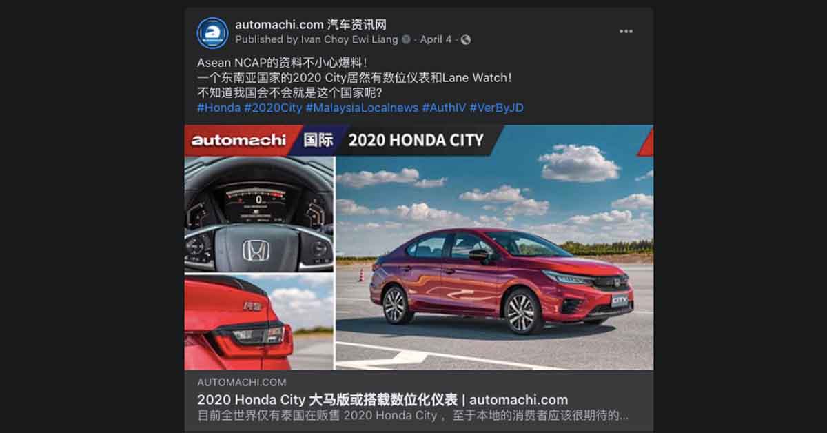 2020年4月4日:Honda City 我国版或将搭载数位化仪表