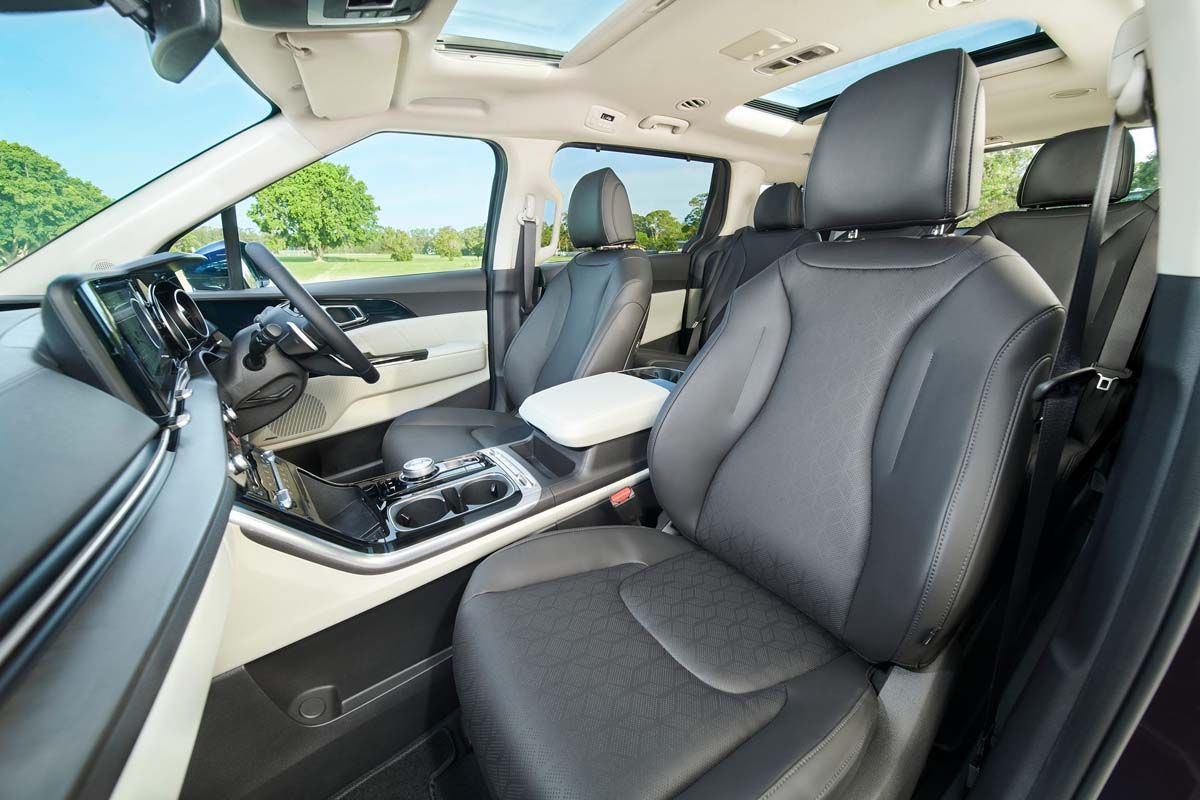 在内装部分同样的也是采用了全新的家族设计风格,打开车门可以看到全液晶仪表盘以及大尺寸多媒体主机,挺有 Mercedes-Benz 车款的既视感(一些版本仍然采用指针仪表),同时娱乐主机可支援 Apple Carplay 手机互联功能。另外,中控台的也采用了镀铬实体按键,质感更好,同时 Carnival 的排挡杆更换了旋钮式设计,大大提升了 Carnival 的贵气!值得一提的是,2021 Carnival 是一辆11人座的车型,而且具备灵活的空间收纳,所以实用性不用质疑。