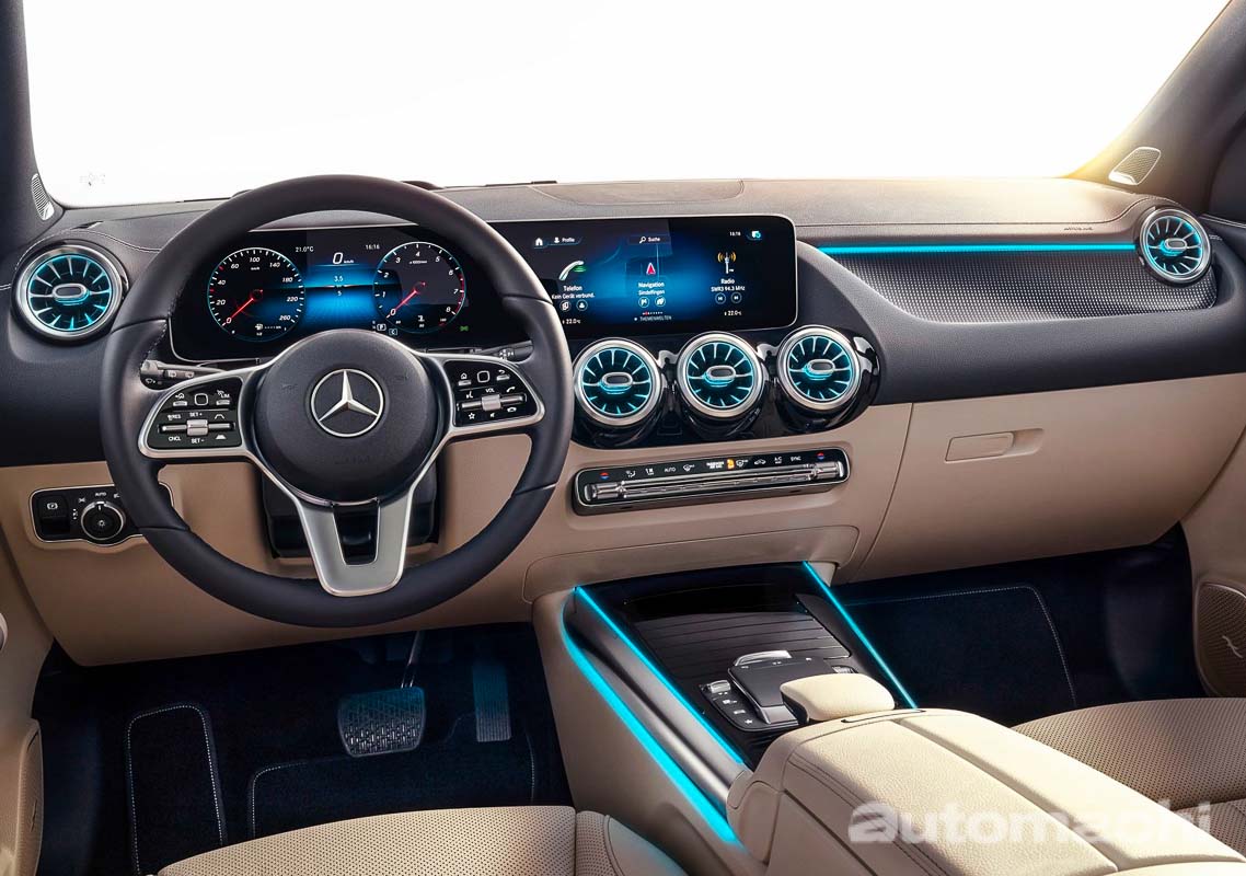 内装部门,同样的也是采用了新一代的奔驰的家族设计,科技感也同样强烈,两个大尺寸的荧幕(音响主机+数位化仪表)以及炫目的雰围灯设计可以说是非常抓人眼球的,值得一提的是在上一代的车型中空间表现和 A Class 相比并没有太大的差距,但是在新一代的 GLA 上面我们可以看到空间表现放大了不少,最起码这一次后座的乘客可以坐的更为舒适。