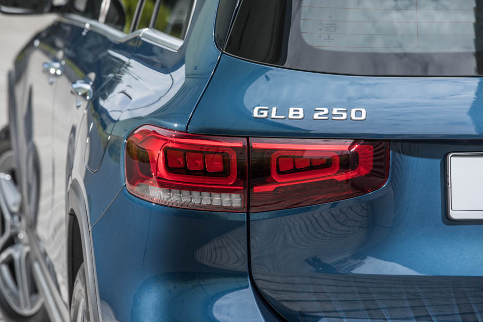在外形上为了兼顾内部空间的关系而采用了较为方正平直的设计,不过车子的前脸部分还是可以看到熟悉的家族式设计,而 GLB250 因为有了 AMG Line 空力套件的加持,所以外形上更为激进运动一些,加上设计非常低调的 LED 头灯组,GLB250 的前脸有点继承了 G Class 粗犷的风格!而车尾部分则基本比照大哥 GLC 及 GLE ,拥有辨识度超高的 LED 灯组设计,并搭配带有镀铬装饰的后保险杠设计,GLB 整体的外观是带有奢华气息,同时又不缺越野风味的!