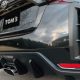 我们可以看到 TOM’s 并没有针对 GR Yaris 的外观进行大改,其中前脸部分原装的保险杠就获得保留,只是加装了下方的前唇以及位于两侧的导流片设计,据悉这样的设计是启发自 Toyota Yaris WRC 拉力赛车。相较之下车尾的变化可就大了,同样也是取材自真正的 Yaris WRC 拉力赛车,我们可以看到 TOM’s 为 GR Yaris 的后保险杠增设了直立式的导流孔设计,此外下方的扰流器也同样变得更具侵略性,而原本的双边单出排气尾管也被更换成中置式的设计,加上同样也是拉力规格的大型尾翼设计,令整个车尾的战斗气息提升了不少。