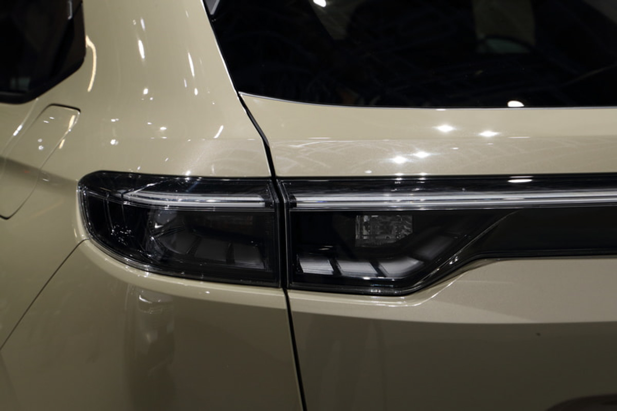 在外形上,首先新一代 Vezel 可说是大量保留了之前 Honda 发表的 e:concept 概念车的设计,其中极为锐利的前脸造型算是 Honda 的全新造型理念,大型的横格栅水箱护罩搭配扁平式的 LED 头灯组,加上长车头以及溜背车尾的设计,极具运动气息。