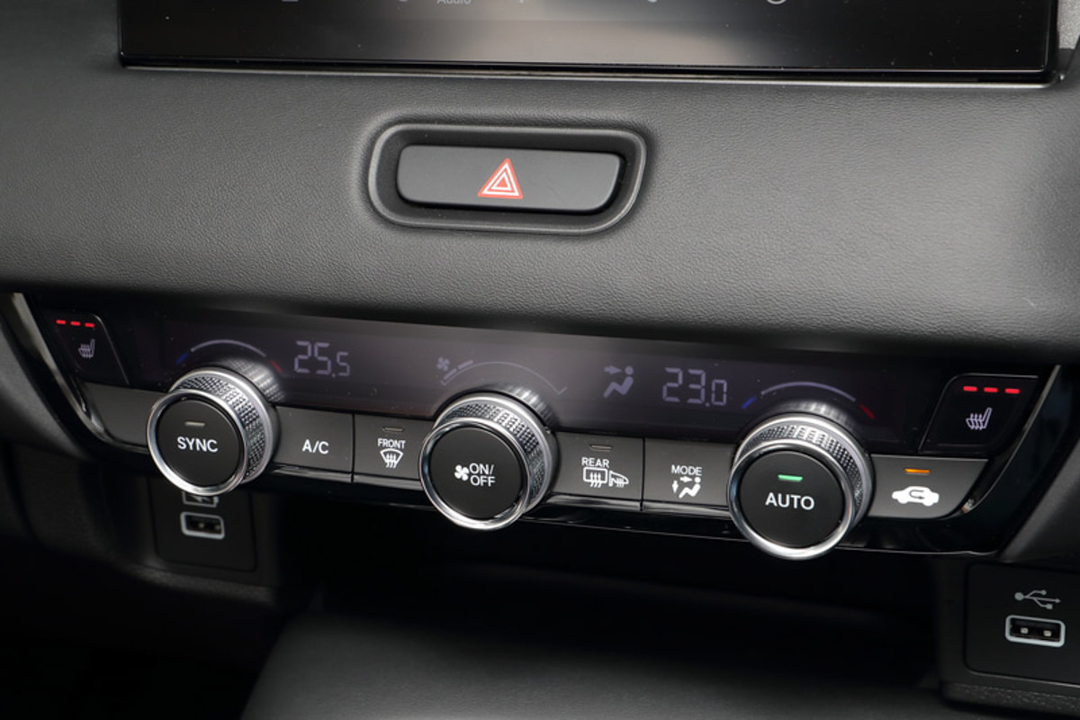 至于内装方面也是和上一代的 HR-V 截然不同,在仪表板和中控台的部分采用了类似 Honda e 的双层式双色极简设计,并在一些细节部分导入了亮丽的配色,整体看起来极为酷炫,而中间则安置了悬浮式的触控大屏幕主机,界面方面和我国新一代的 Honda Accord 相似,至于空调控制面板以及仪表盘则是和我们的 Honda City 相似;不过最为特别的还是新车采用了复古式的空调出风口以及旋钮设计,除了很有质感以外在视觉上也看起来更为独特与时髦,显得非常精致。