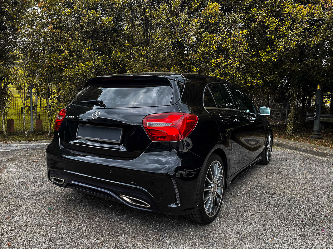 2016年 MBM (大马奔驰)引进了小改款的 W176 A Class 车型,这一次改款在外观以及内装上面都做了修饰,因此目前为止看到这款车还是非常时尚帅气。首先小改款车型最大不同就是将原本的 HID 头灯组换成了 LED 灯灯组,另外尾灯组的排列也做了修改,并且采用了时下流行的3D LED光条设计,看起来辨识度十分高。至于在车身尺码方面它的长宽高为4,292 mm X 1,780 X 1,433 mm,轴距为 2,700 mm。