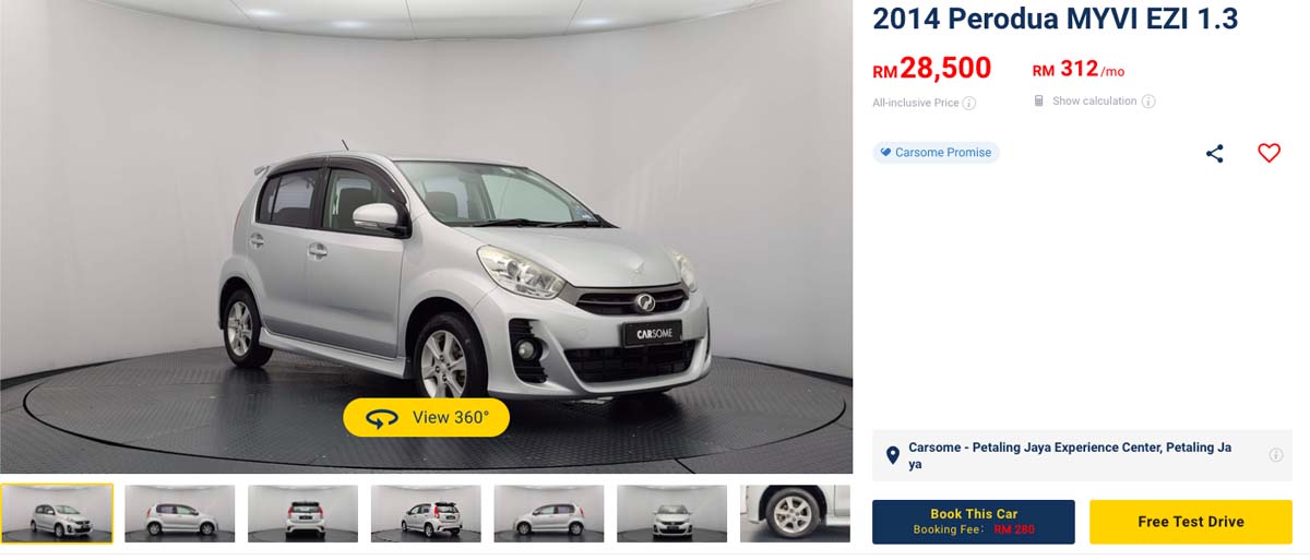 再来一点就是 Myvi 在市场上非常热门,你买了一台 Myvi 可能只是作为代步工具,在三五年之后你想要卖掉换车的话 Myvi 也是非常容易脱手的,就是因为它的上手门槛不低,而且油耗也不高,对于没有什么要求的消费者绝对很够用了,不过呢要找寻一辆状态很好的二手车其实也是有点难度的,而且根据本人的经验,一些车商在你提出需要试驾的时候会表示必须要给定金了才可以试驾。