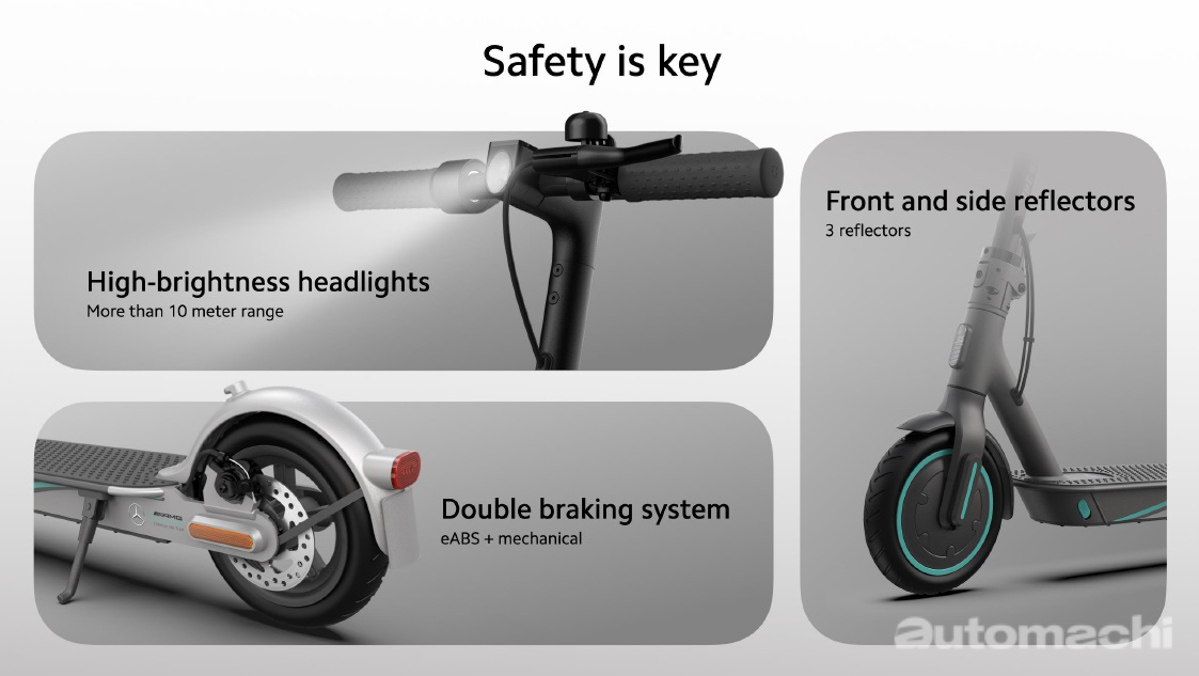 Mi Electric Scooter Pro 2 Mercedes-AMG Petronas F1 Team Edition 搭载的是最高输出 600KW 的电动马达,续航里程达到了45 KM,最高时速可达25 KM/H 并且具备20%的爬坡功能。不但如此,这款电动滑板车还备有高亮度的 LED 头灯,E-ABS 电子刹车辅助系统,前后刹车卡钳以及多功能仪表盘,这些配备对于一辆电动滑板车来说真的是很厉害!而且 799 欧元(折合约 RM 3,905)的售价就能拥有一辆 AMG ,是时候圆梦了,兄弟们!