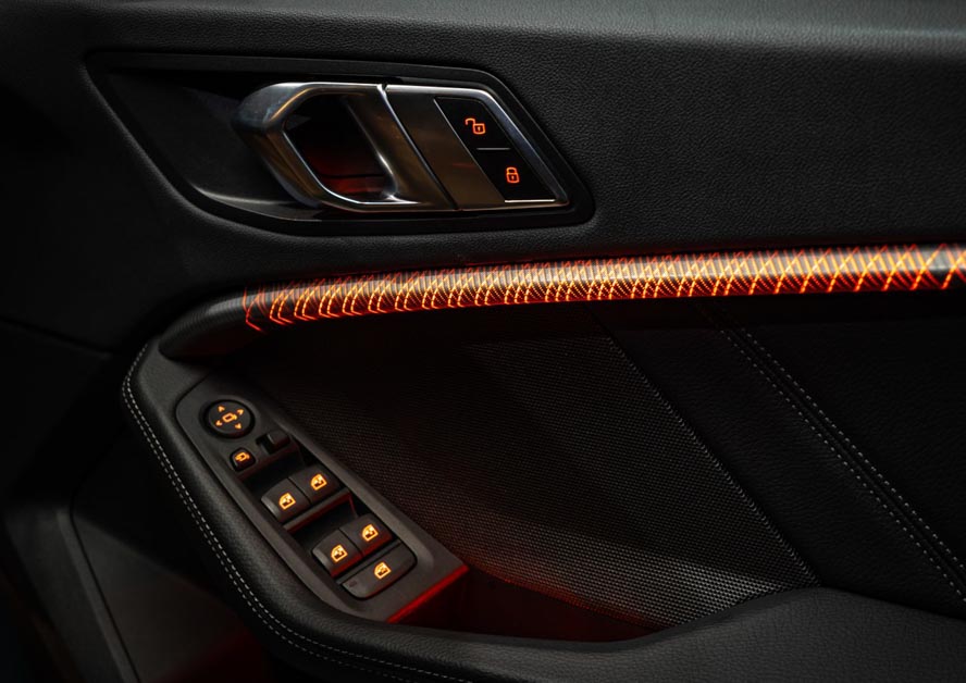 至于内装部分,打开 M235i xDrive 的无框车门,映入眼帘的是最新的 BMW 内装设计,全新的 M 多功能方向盘,全液晶仪表,大尺寸 iDrive 娱乐主机,以及数位化显示的冷气操控面板都一应俱全,而且虽然是性能车,但现在流行的气氛氛围灯 M235i xDrive 也是不忘搭载,内装简直就是运动,奢华,逼格满满!