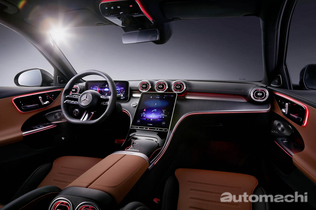 内装部分,因为轴距和宽度都加大了,因此 C-Class L 的空间表现比起普通版还要更出色,另外原厂也针对了一些细节进行加强,例如说中央扶手加大,并且内置了 USB 插槽,再来就是中控台的铺陈更为豪华,包括了绚丽的氛围灯,大尺寸的数位化仪表以及大尺寸的触屏主机也是标准配备。