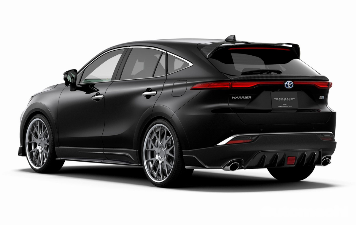 Artisan Spirits 为 2021 Harrier 打造的空力套件包含了多层式的前唇,侧裙,轮拱上的小爆龟,极具战斗气息的后扰流器设计,加上同样位于尾门上方的尾翼设计,整体可说是相当偏向运动风。不过全车最大的亮点还是 Artisan Spirits 居然还为这款豪华 SUV 打造出拥有导热孔设计的引擎盖!而在前保险杠部分,我们也可以看到侧边的格栅也多了额外的饰条设计。虽然说整体的设计都是夸张的 Sporty Look ,但是在搭配了大尺寸的镀铬轮圈以后,反而多了一丝奢华与贵气的气息,相当特别!
