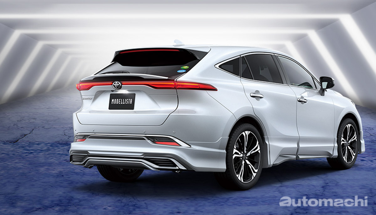 至于 Avant Emotional Style 套件则是偏向运动风,可见其前后包围的设计都比较锐利与动感,与 Harrier 肌肉感十足的前脸以及扁平细长的 LED 灯组结合后,视觉效果真的很好,拥有 Coupe 的感觉!另外,Modellista 还为 Harrier 导入鸭嘴尾翼以及动感的后保险杠设计,整体看起来确实 Sporty 了不少。