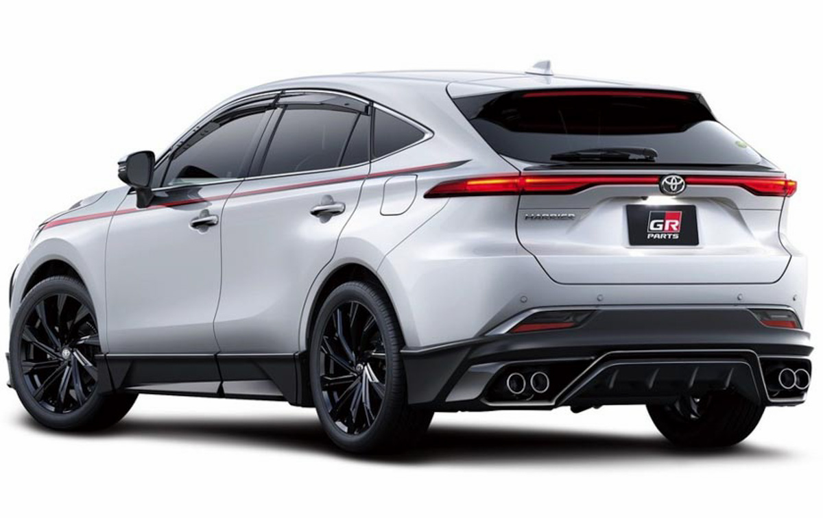 最后就是 Toyota 自家官方的 TRD/GR 空力套件了,在外形上拥有大量哑光黑的套件,包括前保险杠,扰流器,大尺寸轮圈,侧裙,以及后保险杠等等。另外,原厂也为 Harrier 添加了一些红色的车身拉花贴纸,以彰显 Gazoo Racing 的身份。而在车尾部分,除了有小型尾翼以外,原厂还为 Harrier 导入了双边四出的排气管设计,战斗格十足!