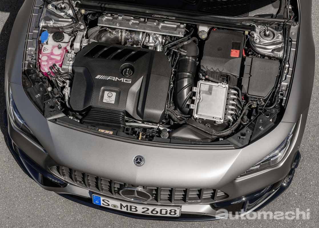 在引擎方面 CLA45S 均搭载了代号为 M139 的全新2.0L涡轮增压引擎,在最大马力表现为416 Hp,峰值扭力500 Nm,0-100的加速表现为4秒(普通版车型),两个车型均搭载全新的8速双离合器变速箱,这样的性能不只是家用,就算你在假日独自出门的话都可以享受一下 AMG 车款为你带来的热血!
