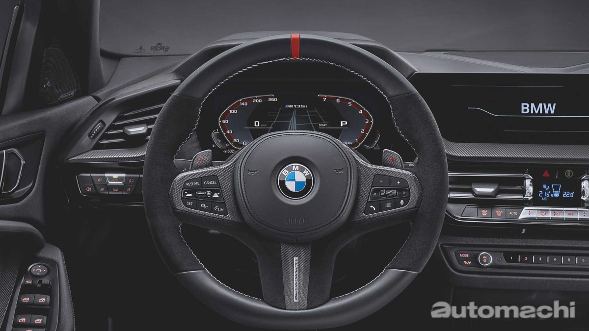 全新一代的 1 Series 唯一一款登陆我国的新车就是 M135i ,这主要的原因是原厂专注在 2 Series Gran Coupe 的关系,因此这款钢炮车型是采用入口的方式在我国贩售,售价为RM355,646(豁免 SST 价格)。在外观设计上面不得不说这款车型还真的很有钢炮范儿,首先就是配色方面采用了天空蓝以及红色,看起来非常的年轻,再来就是蓝色的刹车卡钳,运动化的轮圈以及双边单出的排气管设计都彰显了其钢炮的地位。
