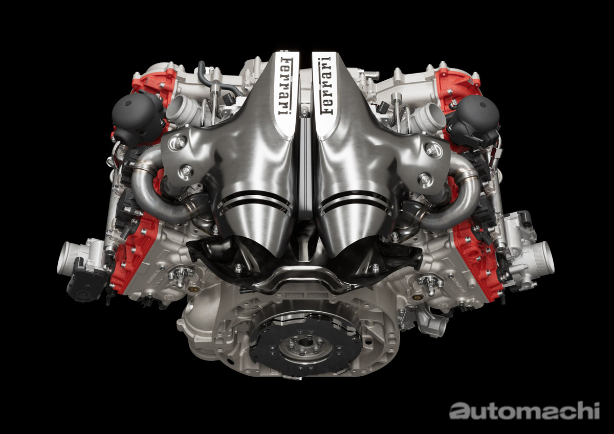 这具全新的 V6 引擎相比 F8 Tributo 的 V8 轻了30 kg,车身重心也比 F8 降低了10 mm,而引擎与马达之间设有离合装置,在 e-Drive 纯电驾驶模式之下可将两者分离,完全使用马达独立操作。Ferrari 也宣称,这具 V6 引擎拥有迷你 V12(Picocolo V12)的称号,能够发出足以媲美 V12 大哥的高亢引擎声浪。